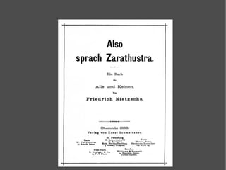 Friedrich Nietzsche describe tres transformaciones del espíritu del hombre occidental: el camello (carga con valores y creencias), el león (supera valores establecidos), y el niño (crea nuevos valores de forma inocente). Las transformaciones se explican en mayor profundidad en los enlaces provistos.