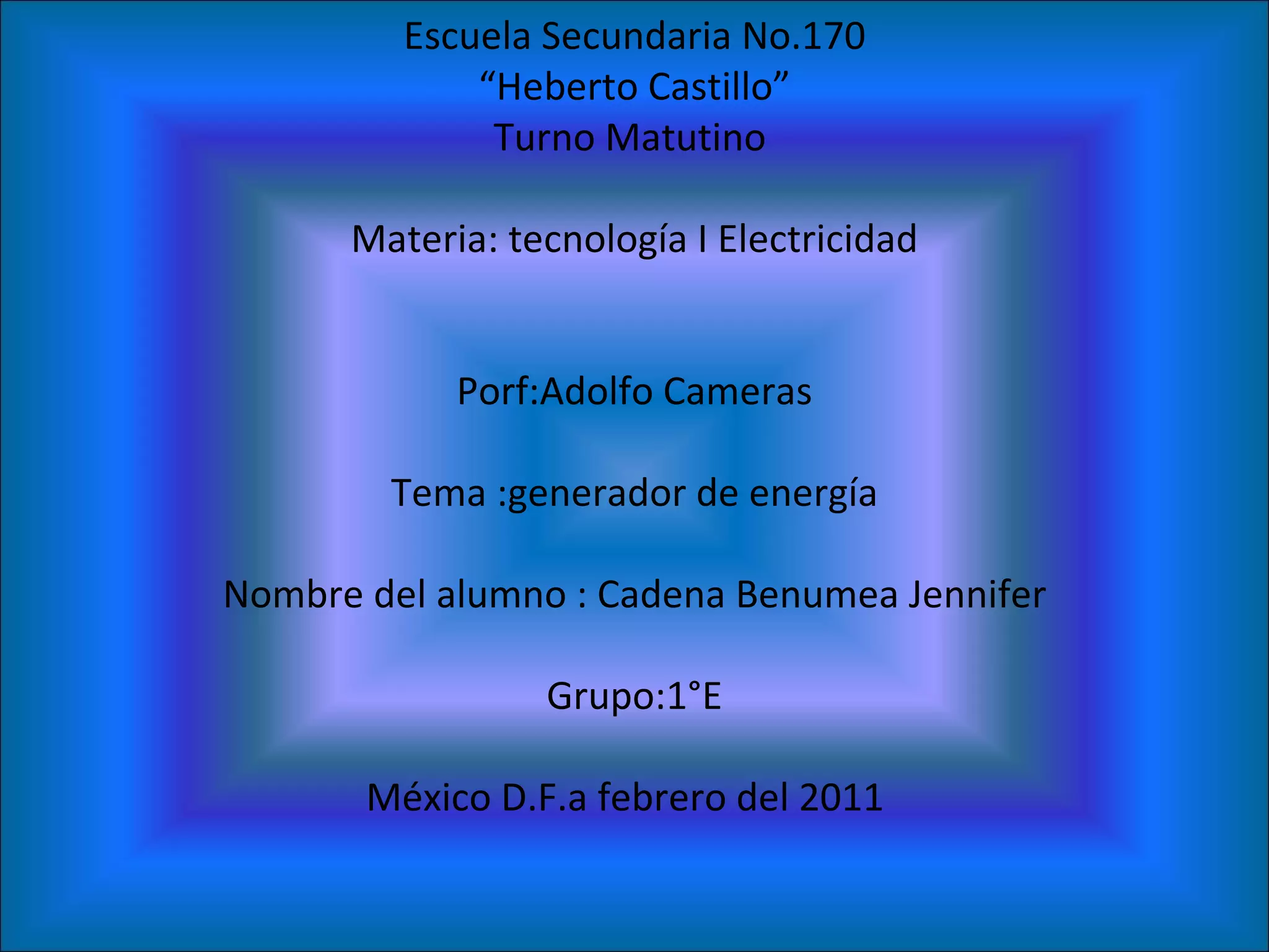 Este documento resume diferentes tipos de generadores de energía eléctrica, incluyendo centrales termoeléctricas, hidroeléctricas, eólicas, fotovoltaicas y pilas. También describe las magnitudes eléctricas como tensión, corriente y resistencia. Finalmente, explica el triángulo de la ley de Ohm.