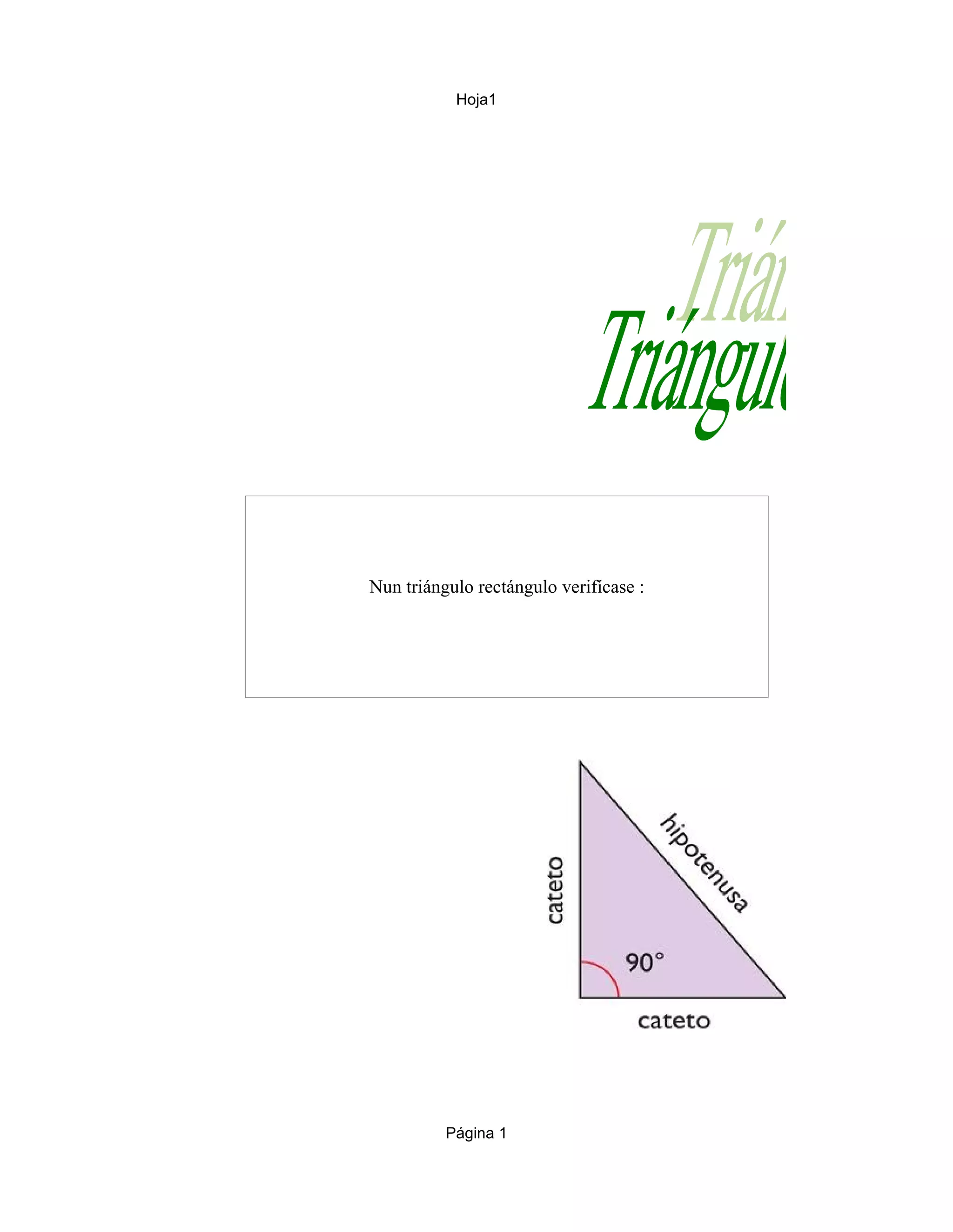 Este documento presenta varios ejemplos numéricos para ilustrar la fórmula matemática que relaciona los catetos y la hipotenusa de un triángulo rectángulo. Se proporcionan los valores de los catetos y se calcula la hipotenusa usando la fórmula de Pitágoras en diferentes escenarios. También se muestra un error al intentar calcular un cateto.