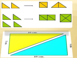 Este documento proporciona una descripción detallada de los triángulos. Define un triángulo como un polígono de tres lados y tres vértices. Explica las clasificaciones de los triángulos según la longitud de sus lados (equilátero, isósceles, escaleno) y según la medida de sus ángulos (rectángulo, oblicuángulo, agudo, obtuso). También cubre la congruencia de triángulos y los criterios para determinar si dos triángulos son congruentes (lado-lado-