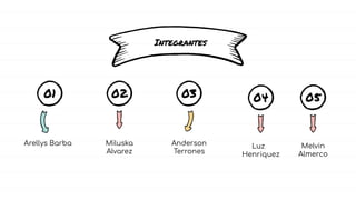 Este documento presenta un equipo de 5 integrantes que trabajan juntos en un proyecto. Los nombres de los integrantes son Arellys Barba, Miluska Alvarez, Anderson Terrones, Luz Henriquez y Melvin Almerco. El documento finaliza agradeciendo la colaboración.