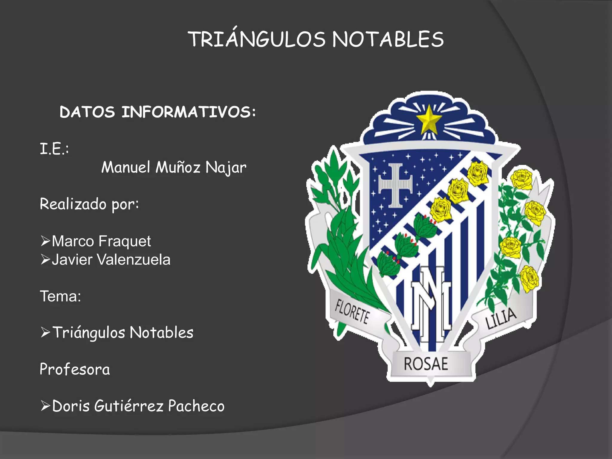 Este documento presenta información sobre triángulos notables. Explica que los triángulos notables son triángulos rectángulos cuyos lados tienen relaciones de números enteros o irracionales. Describe varios triángulos notables comunes como el triángulo de 45-45 y el triángulo de 30-60. Incluye ejemplos de cómo usar los triángulos notables para resolver problemas.