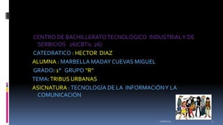 Este documento describe varias tribus urbanas, incluyendo sus orígenes, características distintivas y preferencias musicales. Explora culturas como la emo, pokemon, nerd, gótica, roquera, punk, hippie, rasta y fresa. Proporciona detalles sobre su vestimenta, ideologías e intereses comunes.