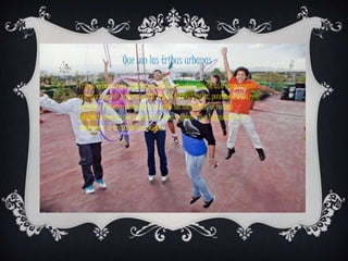 Este documento describe diferentes tribus urbanas, incluyendo sus orígenes y características distintivas. Define tribus como homies, emos, pokemones, punks, raperos, ska, frikis, góticos, rastas, rockeros y discute brevemente las modificaciones corporales. Cada tribu se distingue por su estilo musical, vestimenta y actividades preferidas.