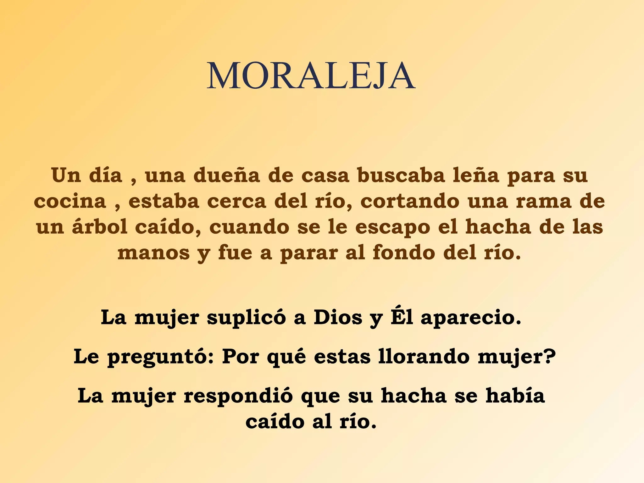 La mujer pierde su hacha en el río y Dios la ayuda recuperándola. Cuando el esposo de la mujer cae al río, Dios lo rescata pero trae a Brad Pitt en su lugar. La mujer miente diciendo que es su esposo para evitar que Dios la obligue a cometer trigamia trayendo más hombres del río. Dios perdona a la mujer por su ingeniosa explicación.