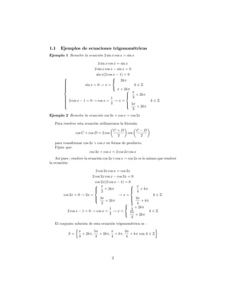 Este documento trata sobre ecuaciones y sistemas de ecuaciones trigonométricas. Se divide en dos secciones principales: 1) Ecuaciones trigonométricas, que presenta ejemplos y ejercicios de ecuaciones trigonométricas y métodos para resolverlas, y 2) Sistemas de ecuaciones trigonométricas, con ejemplos y ejercicios de sistemas de este tipo. El autor es Juan José Isach Mayo y la fecha del documento es 7/01/2007.