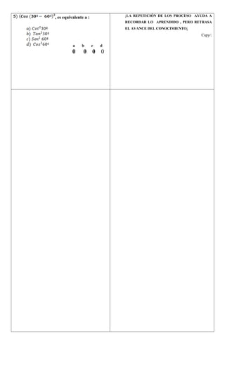 Este documento contiene una prueba de probabilidades compuesta por 10 preguntas. La prueba evalúa conceptos básicos de probabilidad como determinar la probabilidad de eventos opuestos, contar el número de posibilidades de arreglos y combinaciones de letras y palabras, y calcular la probabilidad de resultados en experimentos de muestreo y lanzamiento de dados. El documento también incluye definiciones clave de probabilidad.
