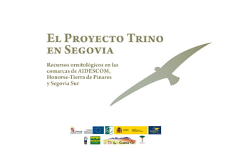 Este documento describe el proyecto TRINO+ que tiene como objetivo valorizar los recursos ornitológicos de las comarcas de AIDESCOM, Honorse-Tierra de Pinares y Segovia Sur en Castilla y León para fomentar el turismo ornitológico y de naturaleza en la región de manera sostenible. El proyecto busca diversificar la oferta turística rural mediante la configuración de una oferta de turismo ornitológico consensuada con los actores locales.