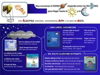El documento es una recopilación de libros, aplicaciones, y canciones relacionados con la temática de ciudades, espacio y naturaleza, dirigidos a un público infantil. Se describen actividades para explorar la ciudad y desarrollar la creatividad de los niños a través del arte y la narración. Además, se incluyen sugerencias para juegos educativos y recursos audiovisuales que fomentan el aprendizaje y la curiosidad.