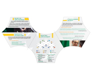 El documento describe un nuevo modelo de trabajo llamado "Account Team" para la gestión integral de clientes. El Account Team integra expertos de diferentes departamentos como ventas, facturación, compras y asistencia al cliente/conductor en equipos unificados para ofrecer un servicio más personalizado y rápido. El objetivo es mejorar la satisfacción del cliente a través de una comunicación más fluida y respuestas más eficientes.