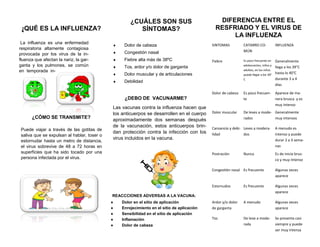 Este documento proporciona recomendaciones para prevenir la propagación de enfermedades respiratorias como la influenza. Recomienda cubrirse la boca al toser, lavarse las manos con frecuencia, evitar lugares concurridos cuando se está enfermo, y beber más de 2 litros de agua al día. También describe los síntomas comunes de la influenza como fiebre alta, tos, dolores musculares y de garganta.