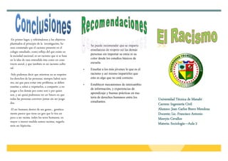2) El racismo persistirá mientras no se respeten los derechos de las personas, por lo que se debe enseñar a los niños a respetarse unos a otros sin importar su etnia o color.