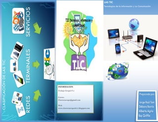 Las Tecnologías de la Información y La Comunicación (TIC) proporcionan información sobre un trabajo grupal #2, incluyendo un correo electrónico y una página web donde se puede encontrar más información sobre el proyecto.