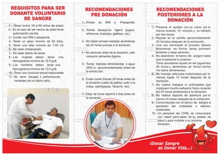 Este documento proporciona información sobre el Centro Hemodador Regional de Loreto y su Banco de Sangre Tipo II. Brinda detalles sobre los horarios de atención, beneficios de donar sangre, requisitos para ser donante voluntario, recomendaciones previas y posteriores a la donación de sangre. El objetivo es promover la donación de sangre para salvar vidas.