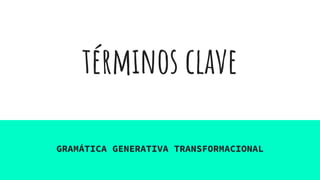 Este documento presenta una serie de términos clave relacionados con la lingüística. Explica conceptos como la gramática generativa transformacional, que estudia los elementos estructurales del discurso. También define la sintaxis, la lengua, la oración, el fonema y otros elementos. Además, describe conceptos como la recursividad, la actuación lingüística, la adaptación lingüística y la aceptabilidad y gramaticalidad lingüística. Por último, presenta las características del discurso como la unidad, diná