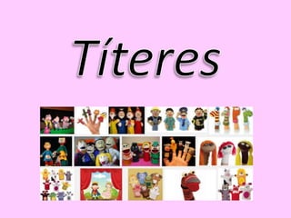 Un títere es un muñeco manipulado para representar obras teatrales, especialmente para niños. Existen varios tipos de títeres como de guante, de varilla, de sombra y marionetas, los cuales se manipulan de diferentes formas y se usan comúnmente para espectáculos en teatros.