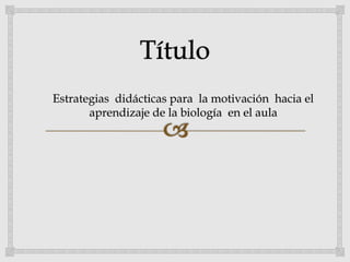 El documento discute la falta de motivación hacia el aprendizaje en los estudiantes y propone estrategias didácticas para aumentar la motivación hacia el aprendizaje de la biología en los estudiantes de cuarto año del Liceo Nacional Ezequiel Zamora de Puerto Cumarebo. El documento analiza las teorías de la motivación del aprendizaje y busca identificar estrategias que despierten el interés de los estudiantes por aprender biología.