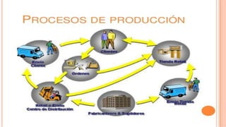• Un procesode producción es el conjunto de actividades orientadas a la transformación de recursos o factores productivos en bienes y/o servicios. En este proceso intervienen la información y la tecnología, que interactúan con personas. Su objetivo último es la satisfacción de la demanda. • Los factores de producción son trabajo, recursos y capital que aplicados a la fabricación se podrían resumir en una combinación de esfuerzo, materia prima e infraestructura.