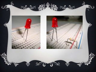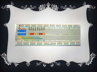 El documento explica el uso de protoboard para representar bits y bytes en diversos sistemas numéricos, facilitando la manipulación de datos. Se detallan los materiales necesarios y se describen las conversiones entre sistemas decimal y binario, así como la práctica de encender LEDs mediante un circuito. Además, se incluyen ejemplos de cómo representar números binarios con LEDs.