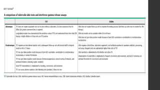 La tuberculosis pulmonar, causada por especies del complejo Mycobacterium tuberculosis, es una de las enfermedades más antiguas con una alta prevalencia global, afectando a más de 2 billones de personas y causando aproximadamente 1.8 millones de muertes en 2015. Los factores de riesgo incluyen pobreza, VIH y condiciones ambientales, y se transmite principalmente a través del aire por contacto cercano. El diagnóstico se realiza mediante pruebas como la prueba de tuberculina y el cultivo de esputo, mientras que el tratamiento inicial requiere una terapia combinada para evitar la resistencia a fármacos.