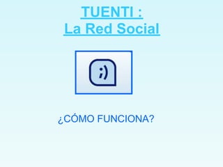 Este documento ofrece una guía para el uso de la red social Tuenti. Explica cómo registrarse e introducir datos personales, cómo acceder a las funciones principales como el perfil, mensajes, amigos y privacidad. También describe cómo etiquetar fotos, cambiar la configuración de privacidad y los idiomas disponibles. Alienta a los lectores a registrarse para explorar todo lo que ofrece Tuenti y conectarse con millones de usuarios.