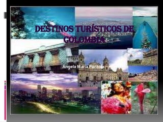 Este documento presenta varios destinos turísticos populares en Colombia, incluyendo el Triángulo del Café y sus cafetales y paisajes, la región del Amazonas con su diversa fauna y flora y culturas indígenas, la isla de Providencia con su belleza natural y submarina, y la ciudad de Barranquilla conocida como la Puerta de Oro de Colombia por su historia como puerto principal y carnavales.