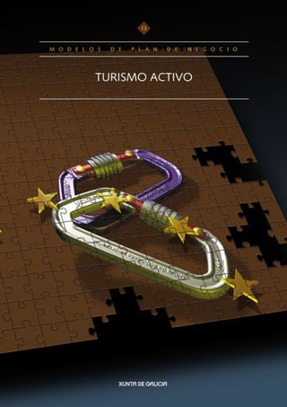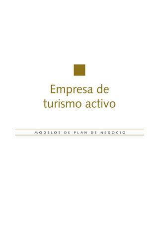 Este documento presenta un modelo de plan de negocio para una empresa de turismo activo. Explica los diferentes aspectos que debe incluir un plan de negocio como la descripción del proyecto, el análisis del entorno, la definición de la actividad y el servicio ofrecido, el proceso de prestación del servicio, el análisis del mercado y la competencia, la comercialización, la localización de la empresa, los recursos humanos necesarios, el plan económico-financiero y los aspectos formales del proyecto. El objetivo