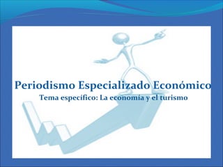 El documento presenta información sobre periodismo económico especializado y la relación entre la economía y el turismo. Define conceptos clave como economía, turismo y formas de turismo. Examina el crecimiento del turismo interno y externo en el Perú y cómo genera divisas. También analiza los principales lugares turísticos visitados y cómo el turismo ha afectado la economía a través de la historia del país.