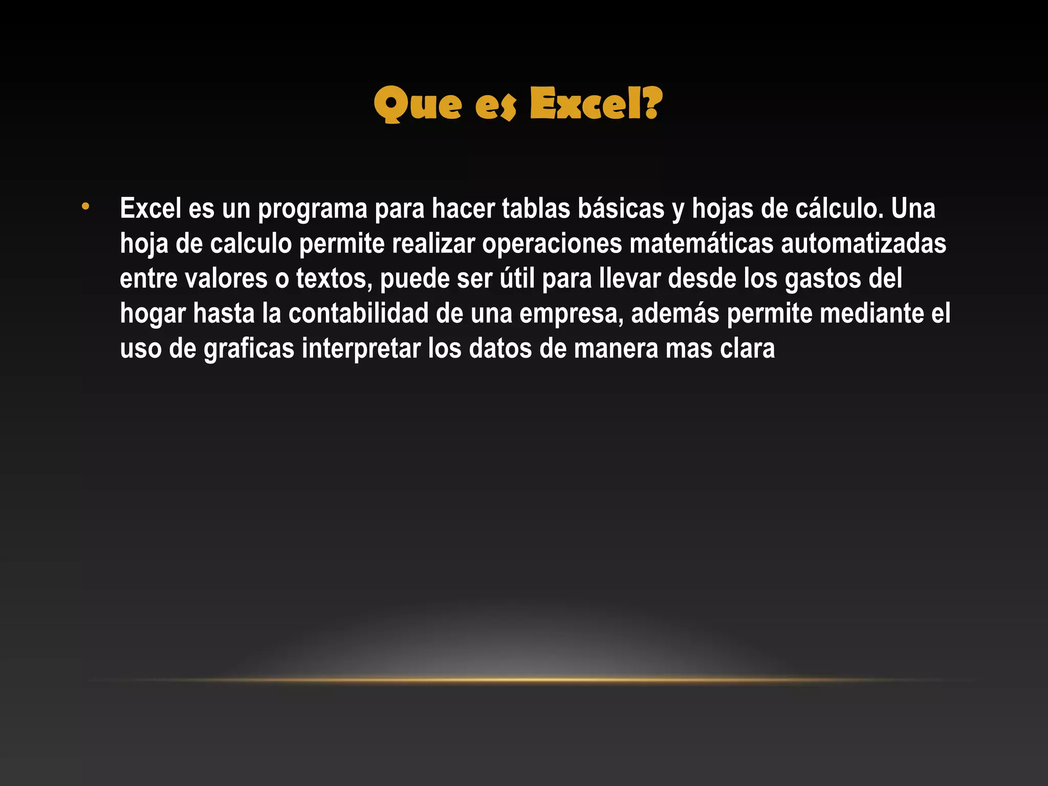 Este documento proporciona una introducción a Microsoft Excel. Explica qué es Excel, cómo iniciar y cerrar Excel, los componentes principales de la pantalla de Excel como la barra de opciones y la barra de fórmulas, y cómo realizar operaciones básicas con archivos como guardar, abrir y crear nuevos archivos. También cubre cómo seleccionar celdas y realizar operaciones básicas.