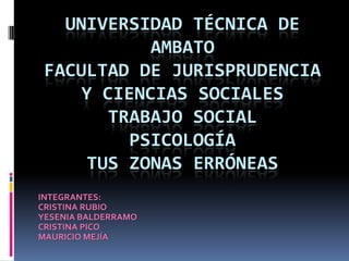 Este documento presenta un resumen de los 12 capítulos de un libro sobre las zonas erróneas de las personas. Cada capítulo explora un aspecto diferente como la búsqueda de aprobación, la dependencia, la ira y la procrastinación. El objetivo general es enseñar a las personas a amarse a sí mismas, ser independientes y responsables de sus propias acciones para alcanzar la felicidad.