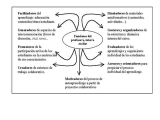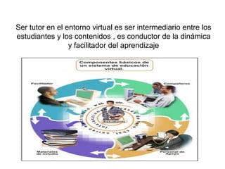 El documento describe el rol del tutor virtual, el cual es ser intermediario entre los estudiantes y los contenidos, y facilitar el aprendizaje. El tutor debe contener a los estudiantes para generar autonomía, sostenerlos para promover prácticas libres, y retenerlos para generar pertenencia. Las funciones del tutor incluyen apoyar a los estudiantes psicosocial y académicamente, y establecer la organización del curso.