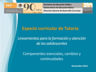 Este documento presenta los Lineamientos actualizados para el espacio curricular de Tutoría en la educación secundaria en México. En 3 oraciones: