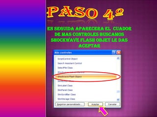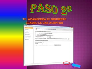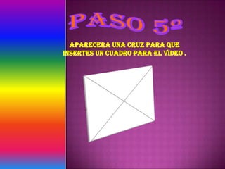 Este documento proporciona instrucciones para insertar un video desde una URL en PowerPoint. Indica revisar que las primeras tres opciones en Propiedades estén seleccionadas, luego ir a Propiedades de Movie e insertar la URL del video, eliminando "watch?", el signo de interrogación y reemplazando el signo igual (=) por una barra diagonal invertida (/).