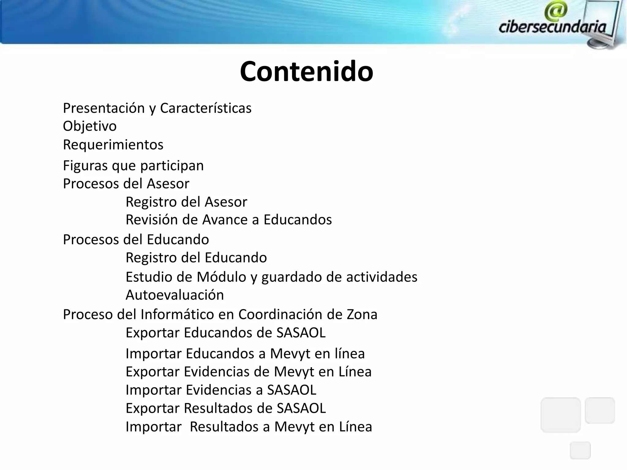 Este documento describe los procesos involucrados en el funcionamiento de la plataforma MEVyT en línea, incluyendo el registro y roles del asesor, educando e informático, así como la importación y exportación de datos entre la plataforma y el sistema SASAOL.
