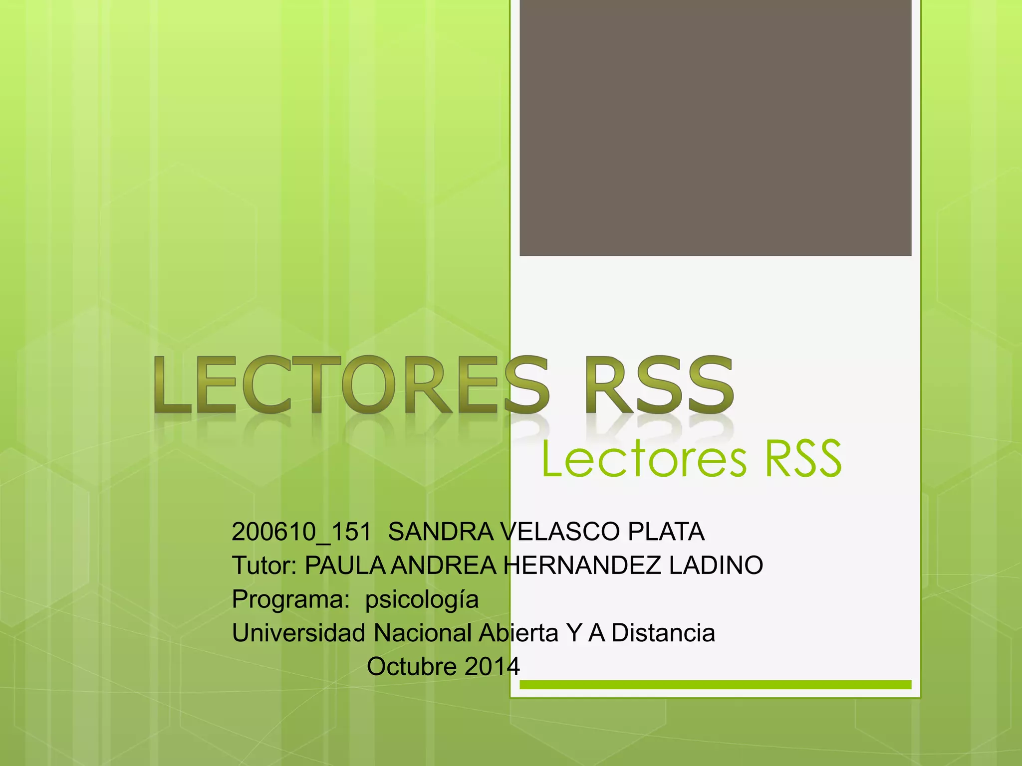 Este documento describe los lectores RSS y cómo agregar fuentes a un lector RSS. Explica que los lectores RSS reúnen información actualizada de páginas web a las que el usuario se ha suscrito. Luego detalla los pasos para agregar una nueva fuente, que incluyen identificar el ícono RSS, hacer clic para suscribirse e ingresar un nombre para la fuente. Finalmente, explica cómo crear una cuenta en Netvibes y agregar contenido ingresando la dirección URL de un sitio web.