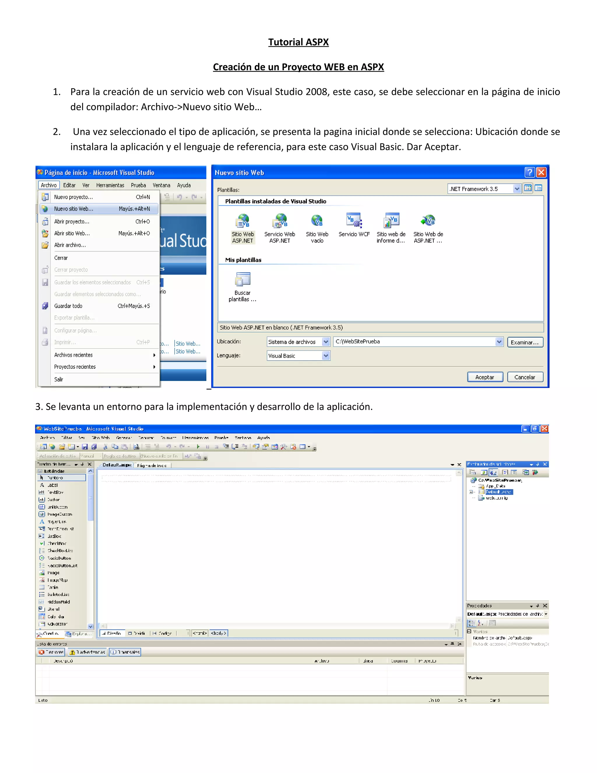 El documento describe los pasos para crear un proyecto web en ASPX y agregar una página de inicio de sesión (Login) con validación de usuario y contraseña. También explica cómo agregar una tabla a la base de datos, mostrar la tabla en una grilla para permitir la edición de datos, e insertar registros mediante el llenado de un formulario.