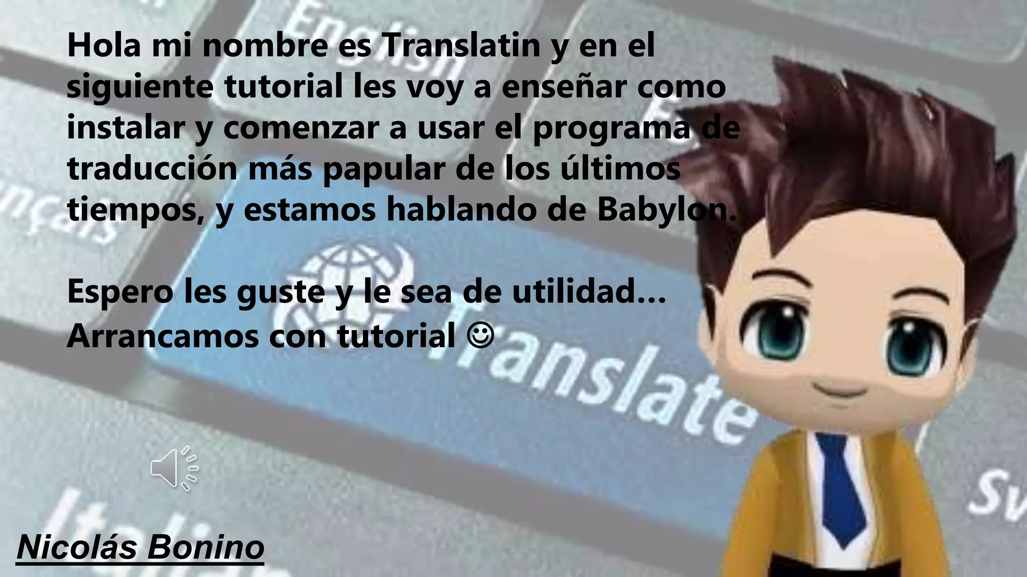 Este documento presenta un tutorial en 15 pasos para instalar y comenzar a usar el programa de traducción Babylon. Explica cómo descargar el instalador gratuito desde su sitio web oficial, aceptar los términos y condiciones durante la instalación, e importar idiomas para comenzar a usar el traductor.