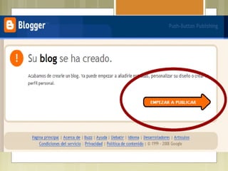 Este documento explica qué es un blog y sus usos para la enseñanza y el aprendizaje. Un blog es una publicación en línea de historias publicadas con alta frecuencia en orden cronológico inverso. Los blogs pueden usarse como un recurso educativo donde los profesores comparten conocimiento y los estudiantes presentan tareas. Explica cómo crear un blog y los beneficios de usar blogs para la comunicación, el marketing y la retroalimentación.