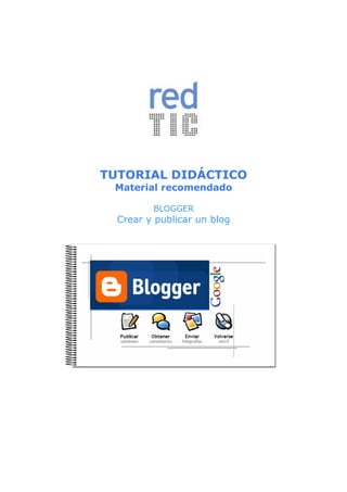 Este documento proporciona instrucciones para crear y administrar un blog usando la plataforma Blogger de Google. Explica cómo crear una cuenta de Blogger, darle un nombre y diseño al blog, crear entradas (posts), añadir imágenes, vídeos y enlaces, y permitir comentarios. También cubre cómo invitar a otros autores y personalizar la configuración y diseño del blog. El objetivo es que un grupo pueda usar un blog compartido para publicar actualizaciones y comentarios a lo largo de un curso.
