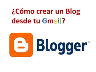 Este documento proporciona instrucciones en 8 pasos para crear un blog desde Blogger.com. Primero, se busca Blogger.com en Google y se inicia sesión con una cuenta de Google existente. Luego, se da clic en "Nuevo blog" para asignar un título y dirección URL al blog nuevo. Finalmente, se selecciona una plantilla, se da clic en "Crear blog" y se personaliza el diseño y contenido del blog recién creado.
