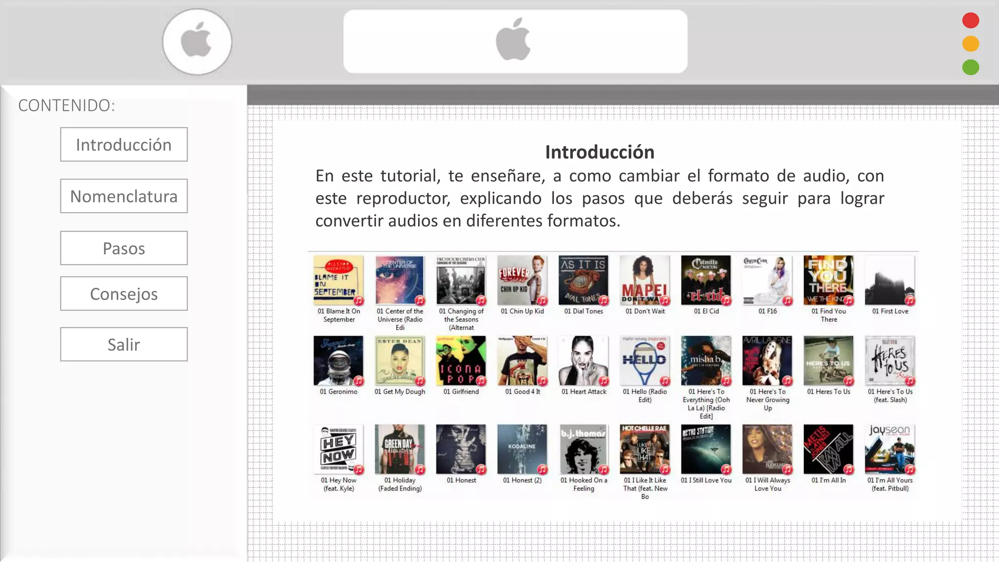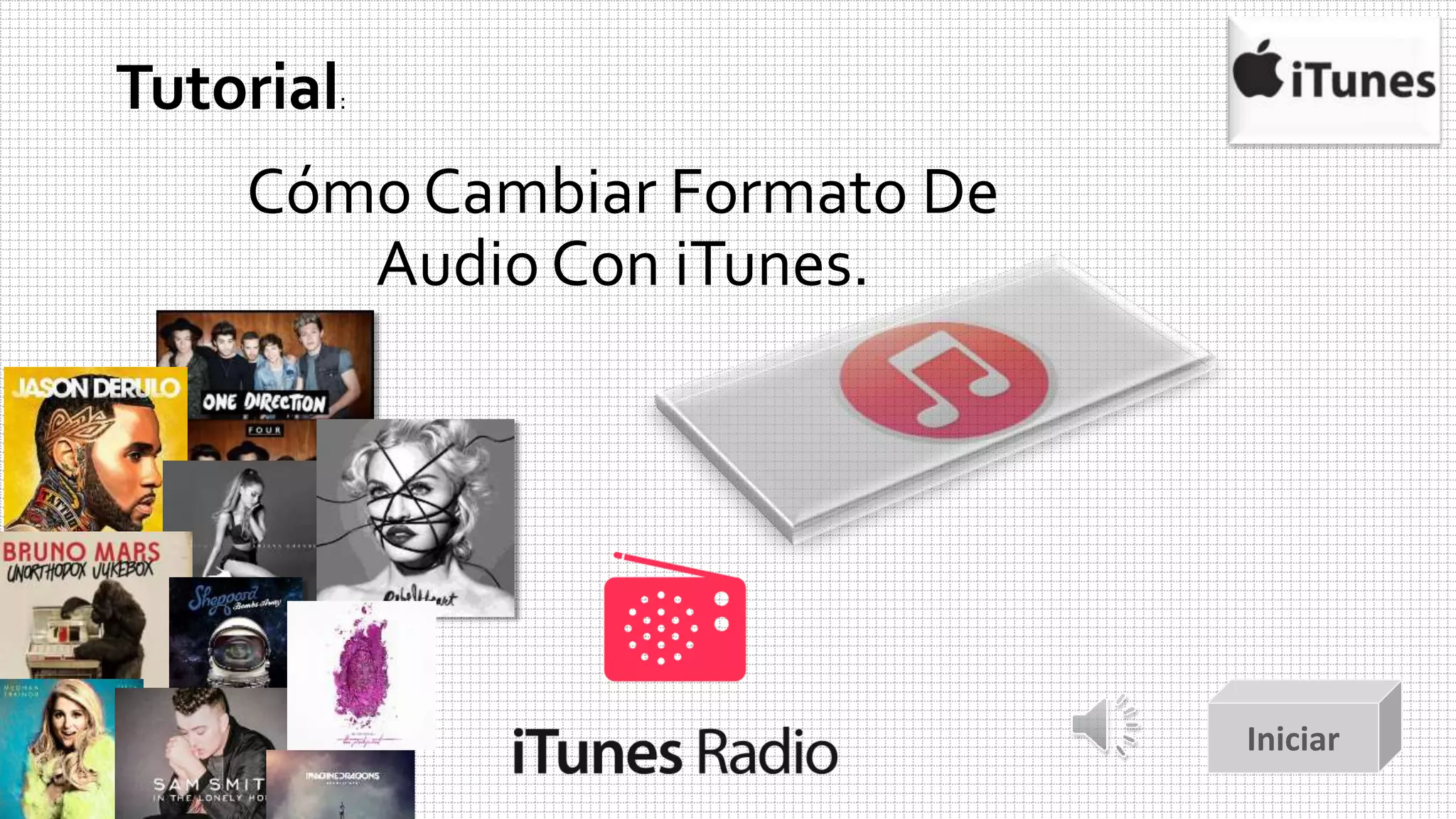 Este documento explica cómo cambiar el formato de audio con iTunes en 5 pasos: 1) abrir iTunes, 2) ir a Preferencias, 3) seleccionar la opción de importación, 4) elegir el formato de codificación deseado, y 5) crear una nueva versión del audio en el formato seleccionado. También proporciona dos consejos para reproducir y ubicar archivos de audio en iTunes.