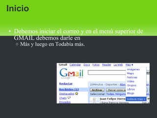 Para crear un blog en Blogger se requiere primero crear una cuenta de Gmail si no se tiene una. Luego, en el menú superior de Gmail se debe dar clic en "Más" y luego en "Todavía más" para acceder al enlace de Blogger. Una vez ahí, solo se ingresa la contraseña de Gmail para crear la cuenta en Blogger, donde se podrá asignar un título y dirección al blog, seleccionar una plantilla inicial, y comenzar a agregar entradas usando códigos HTML.