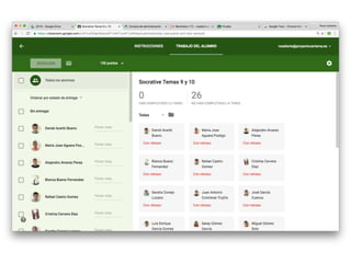 El documento ofrece una guía sobre el uso de Google Classroom como una red social privada para alumnos y profesores, enfatizando la comunicación efectiva y la gestión de tareas. Se detalla cómo crear clases, invitar a estudiantes y profesores, asignar tareas y notificar a las familias, además de incluir consejos sobre la reutilización de publicaciones y la integración con Google Calendar. También se menciona la importancia de mantener el contenido organizado y accesible para facilitar la experiencia educativa.
