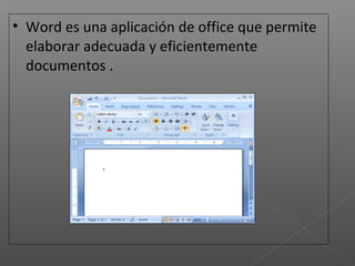 Este documento proporciona instrucciones sobre cómo usar Microsoft Word, incluyendo cómo abrir Word, introducir texto, cambiar atributos del texto como el color y fuente, agregar texto con WordArt, imprimir documentos, y usar las opciones de alineación, copiar y pegar.
