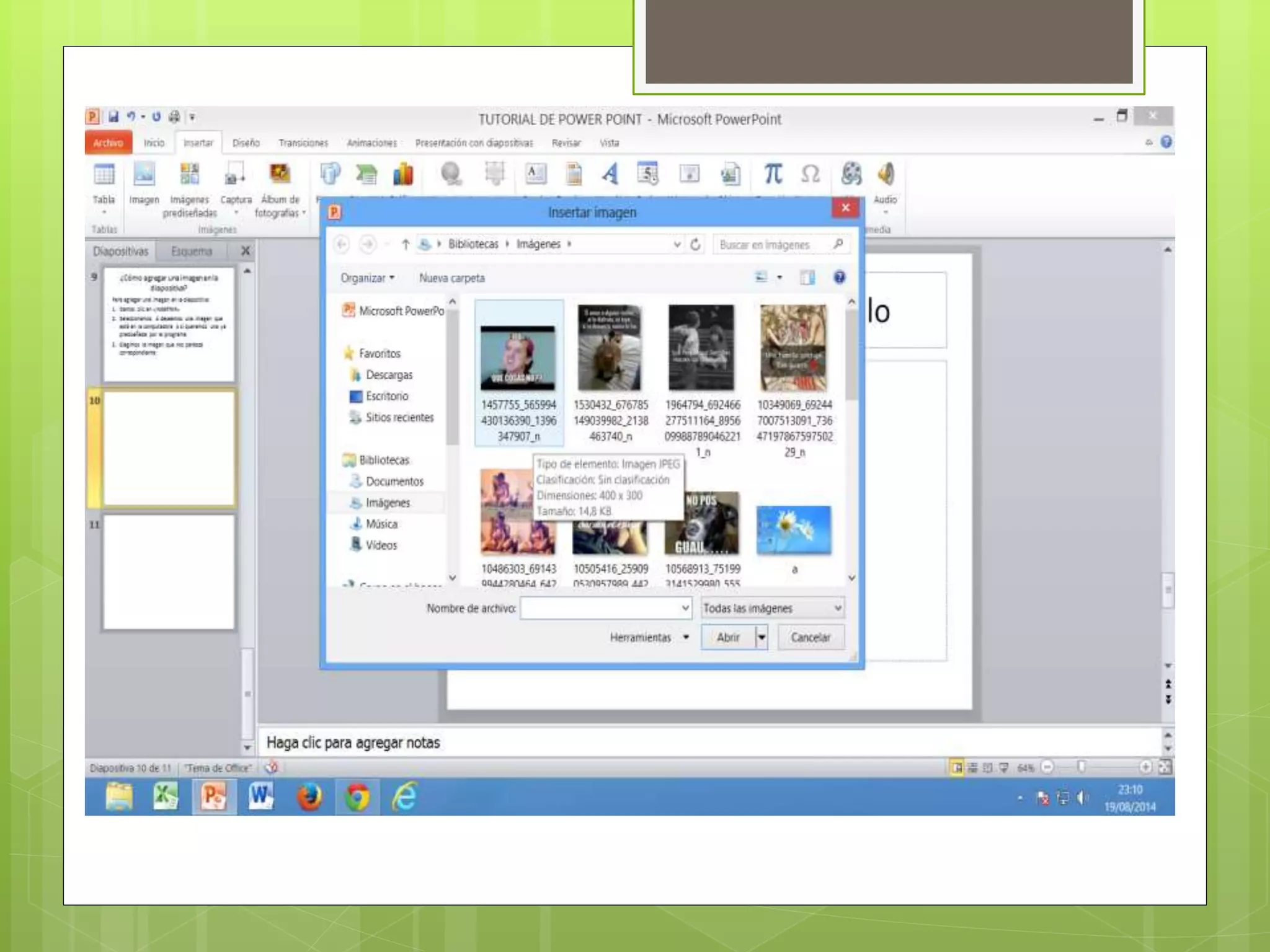 Este documento proporciona instrucciones sobre cómo usar PowerPoint. Explica cómo agregar diapositivas adicionales, guardar presentaciones, agregar audio e imágenes, eliminar diapositivas, reproducir presentaciones e imprimirlas. También explica cómo aplicar diseños a las diapositivas.