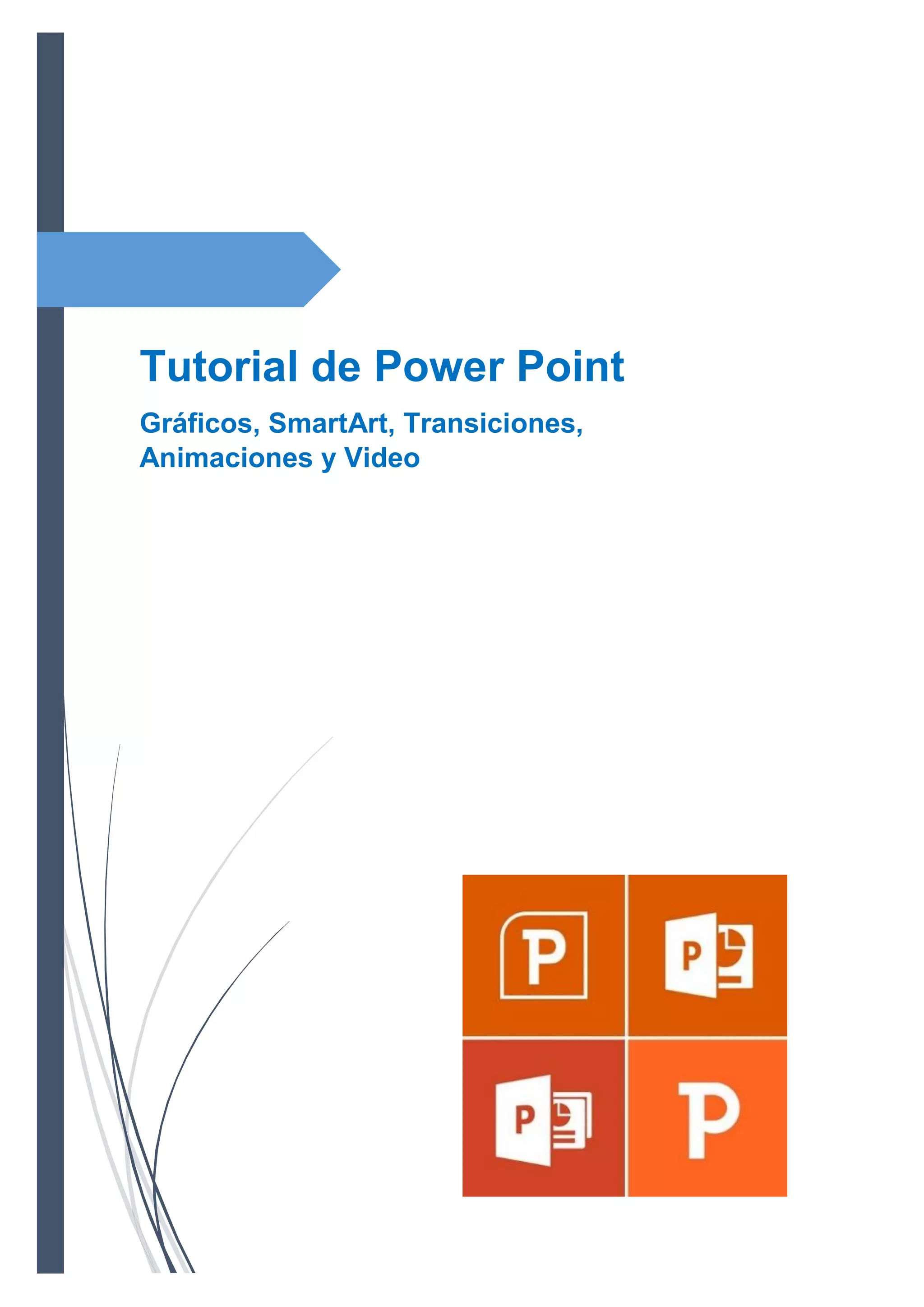 Este documento proporciona instrucciones sobre cómo usar diferentes funciones de PowerPoint como gráficos, SmartArt, transiciones, animaciones y video. Explica cómo agregar reglas, cuadrículas y guías para organizar objetos, duplicar objetos, girar y voltear objetos, crear gráficos SmartArt y cambiar su diseño, crear y modificar gráficos de datos, agregar transiciones entre diapositivas, crear animaciones de trayectoria y énfasis, e insertar video en diapositivas.