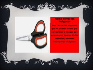 Este documento proporciona instrucciones sobre cómo realizar diferentes tareas en PowerPoint, incluyendo cómo eliminar imágenes, agregar transiciones, agregar animaciones, cambiar el diseño y crear un video. Explica que para eliminar imágenes se debe seleccionar la imagen y cortarla, para agregar transiciones o animaciones se debe seleccionar esas opciones y elegir cual se prefiere, y para cambiar el diseño también se selecciona esa opción y se elige uno nuevo.