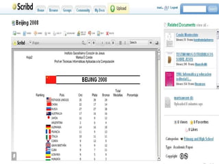 El documento proporciona un tutorial en 6 pasos para registrarse y subir un archivo al sitio Scribd. El usuario debe registrarse completando un formulario, luego confirmar la cuenta a través de un correo electrónico. Una vez registrado, el usuario puede buscar y seleccionar un archivo para subir, asignarle categorías y compartirlo. Finalmente, el usuario puede acceder a los archivos subidos y cerrar sesión.