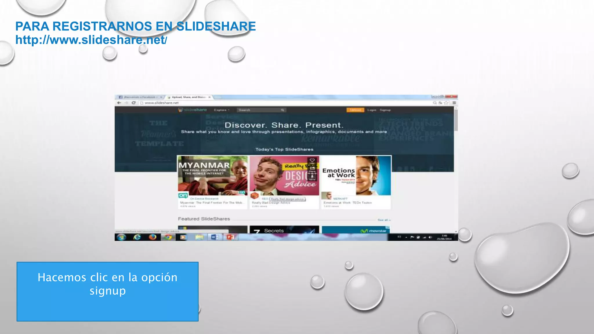Este documento proporciona instrucciones paso a paso para registrarse en SlideShare, personalizar la cuenta de usuario, configurar la privacidad y compartir archivos. Explica cómo cargar archivos, agregar títulos y categorías, y luego compartirlos en un blog de Blogger insertando el enlace de SlideShare.