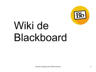 El documento presenta un tutorial sobre cómo utilizar diferentes herramientas en Blackboard como wikis, blogs, entregables y espacios de grupo. Explica en 14 pasos detallados cómo trabajar en un wiki de Blackboard, incluyendo cómo inscribirse en un equipo y editar el wiki. Luego describe en 5 pasos cómo ver los trabajos de otros compañeros en un wiki.